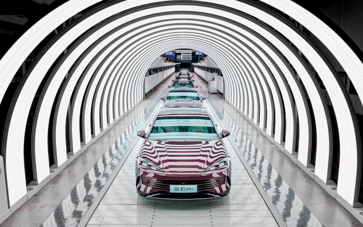 A view of Chinese carmaker BYD's assembly line of new energy vehicles in Zhengzhou, Henan province. [Photo/Xinhua]