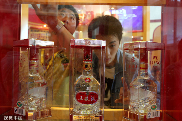 People look at liquor products from Wuliangye Yibin Co Ltd at an expo held in Wuhan, Hubei province. [Photo/VCG]