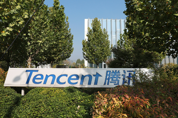 A logo of Tencent is seen in front of the company's headquarters in Beijing, on Oct 30, 2023. [Photo/VCG]