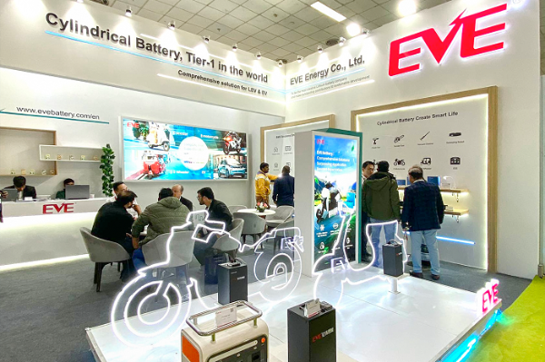 People visit the stand of EVE Energy at the India EvExpo 2023 in India from Dec 22 to 24, 2023. [Photo/EVE Energy's website]