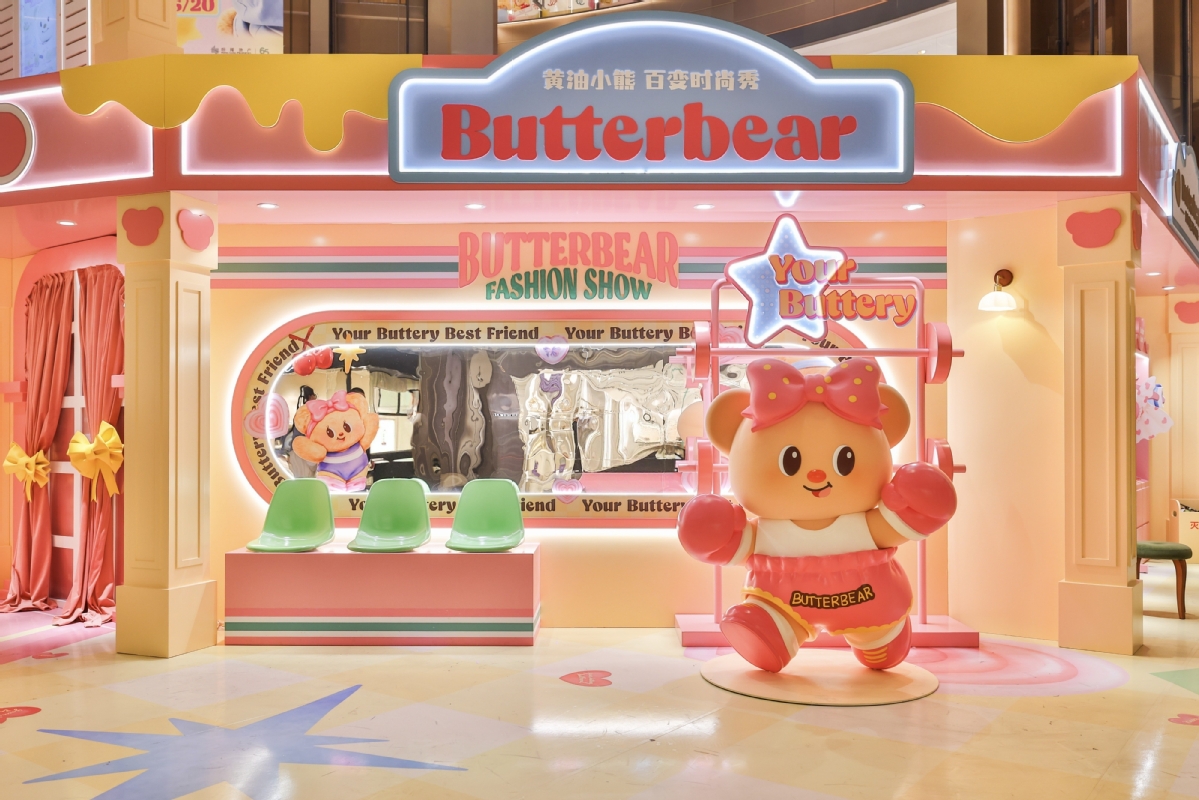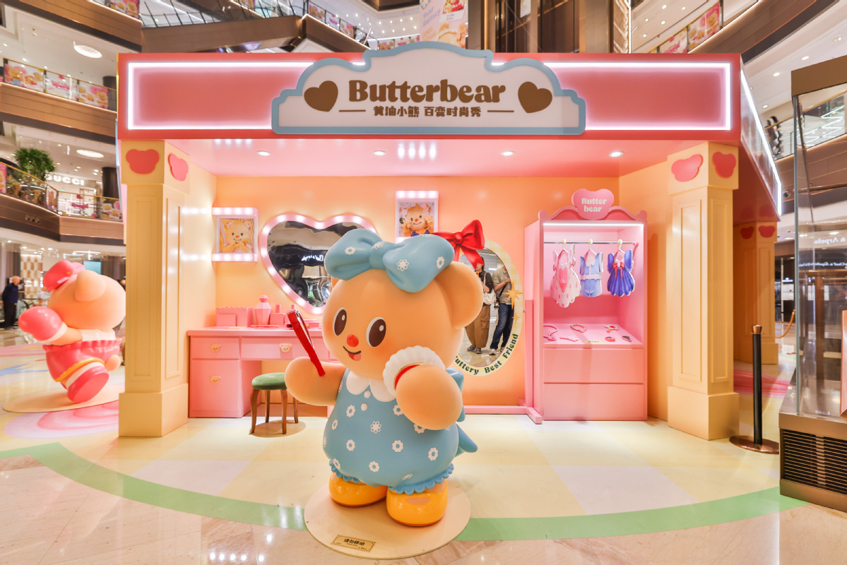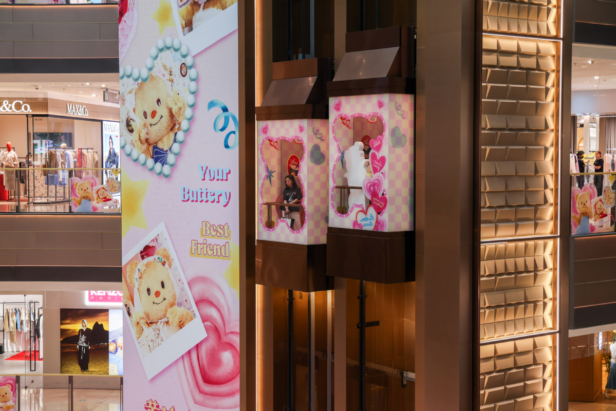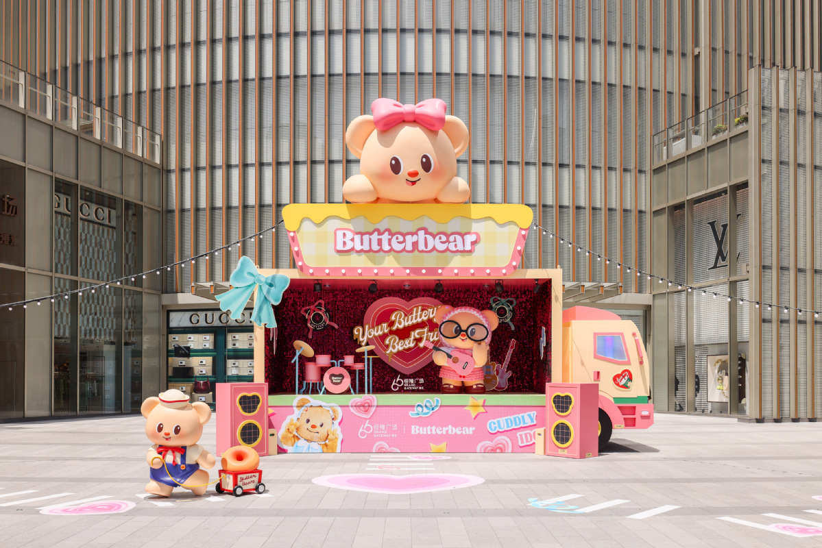 The mall has transformed into a fashion runway featuring the versatile styles of Butterbear, showcasing seven exclusive interactive installations, including a superstar support car, a fashion stage, a celebrity lounge, and an idol practice room.