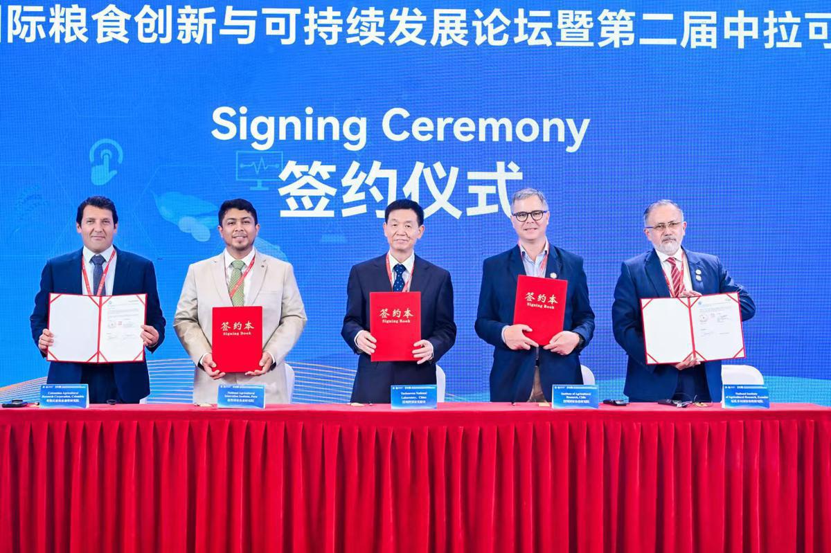 At the forum's opening ceremony, the Yazhouwan National Laboratory signed cooperation memoranda of understanding with agricultural research institutions from Colombia, Peru, Ecuador, and Chile.