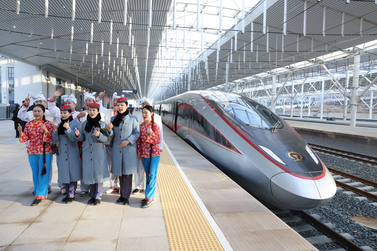 The opening of the high-speed railway line linking Xi'an and Yan'an in Shaanxi province on Friday means China's high-speed railway network, the most extensive in the world, has now surpassed 50,000 kilometers. [Photo by Wang Jing/chinadaily.com.cn]