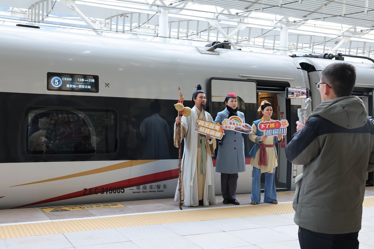 The opening of the high-speed railway line linking Xi'an and Yan'an in Shaanxi province on Friday means China's high-speed railway network, the most extensive in the world, has now surpassed 50,000 kilometers. [Photo by Wang Jing/chinadaily.com.cn]